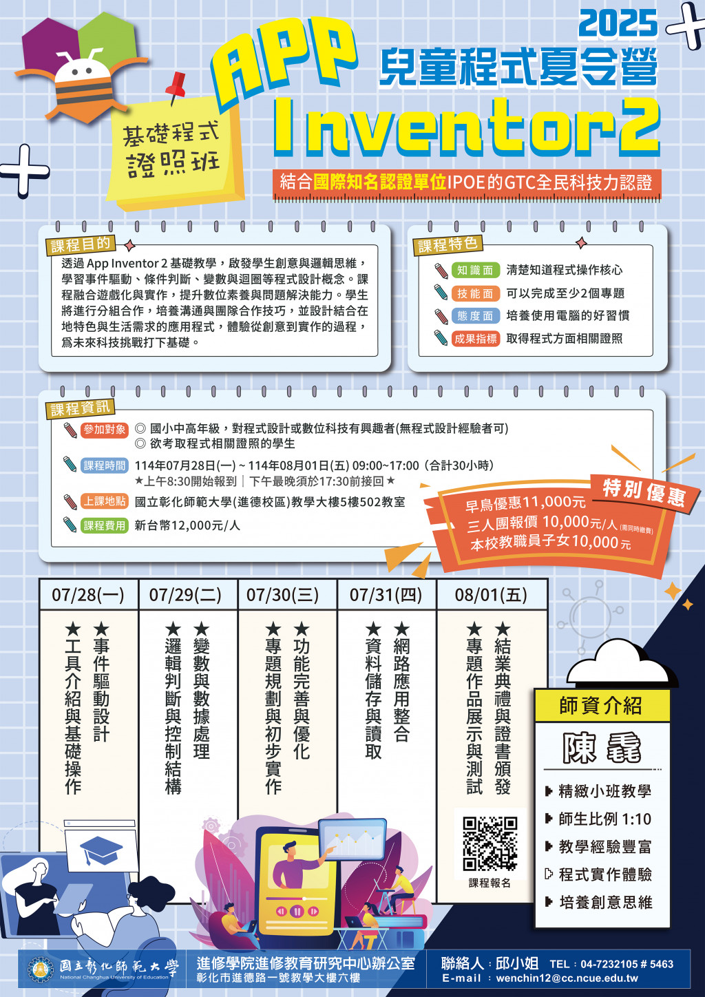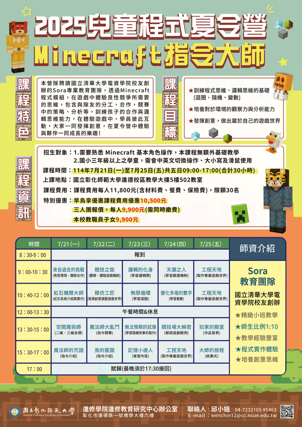 彰化市範大學進修學院推廣教育「【2025兒童程式夏令營】Minecraft 指令大師」、「【2025兒童程式夏令營】App Inventor 2 基礎程式證照班」招生簡章。